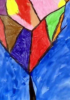 Love how this echoes cubism. Color choice and shapes are unique.