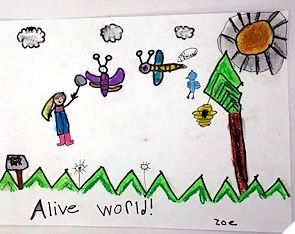 I love your Alive World drawing! The hide and seek on the butterfly that the girl is trying to catch adds an extra special touch to your drawing! Keep up the great work! You are a fantastic artist!