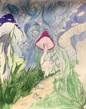 Zoey! Another fantastic piece! Your choice of colors and the perspective of seeing the mushrooms from below is so intriguing.. so beautifully done! Congratulations my little cousin!