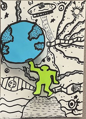 You are so creative. I really like how your green figure is holding up the earth. Keep it up. Love mom