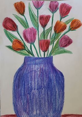 Dylan, For over 30 years, i have bought a bouquet of roses for your Grandma. The roses in this picture look exactly like the ones I buy her. This is special painting to us. We love it!