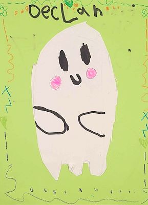 Declan - Looks like you made Gustavo a happy ghost instead of a scary ghost. I love that you made him happy. Happy Halloween!