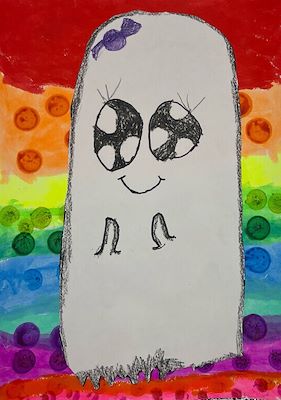 Amazing art. Love the eyes, they look so real. Can't believe a 5 year old drew it.