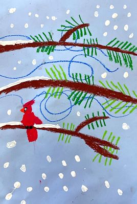 Wow Lucas great job! I like the red bird and the tree branches. Rachel said she likes the drawing.