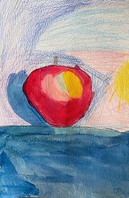 What a wonderful apple - it pops off the page! I can feel the sun and the shadow behind it.