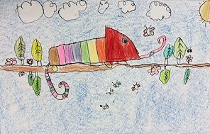 Absolutely beautiful! So full of color, detail and creativity. This chameleon is refusing to blend in!
