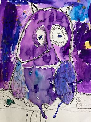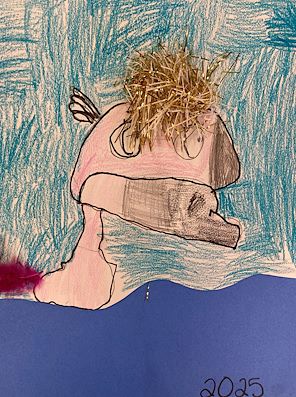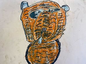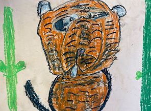 Your tiger, hiding in the jungle plants, has a hungry look on his face, or is he asking a question? Keep up the good work kiddo! Tito loves both you and Damien’s artistic endeavors.