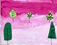 Great piece of art! We really like the look of the different shades of pink in the background from dark to light, and also the shapes of the dark and light green tress with the different styles of lines inside them. Nice job with it!!