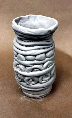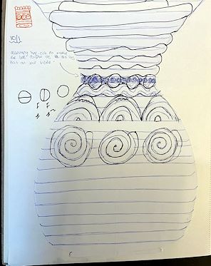 This piece reminds me of a vase with meaning through the balls, swirls, and lines, while the lip and base that both expand outwards is also visually appealing.