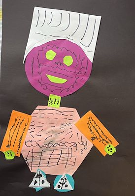 Ellie, I love this robot! The colors and patterns are so creative! It looks like a chef robot :) Love, Mom