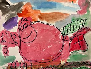I cannot believe how beautiful your picture of this pig is. I love all the bright colors And the smile on the pig’s face. You sure are learning to paint well. Lala