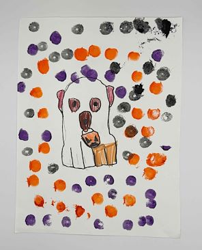 Griffin, you did an amazing job on your puppy ghost. Perfect Halloween picture. Keep the artwork coming. Aunt Rhonda