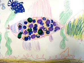 What a wonderful ILLUSTRATOR you are! After listening to the story The Rainbow Fish , you created your own version of Rainbow fish and made a wonderful under the ocean world for him. You also learned how to use the round stamps and make those beautiful blue, green, and purple scales. Hey you even learned those are the cool colors. WOW, you sure learned a bunch of art words and techniques with this one lesson. I know you earned many silver scales. Very creative! Hurray for you.
