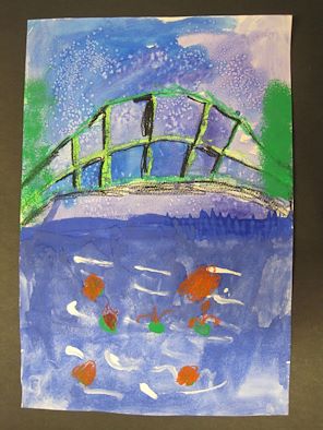 Henry, Grandpa and I love the colors and design of this piece. We especially like the tree ornament you gave us with this piece of artwork. Keep up the good work!