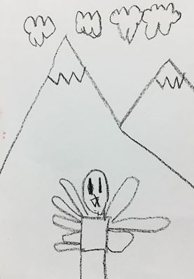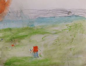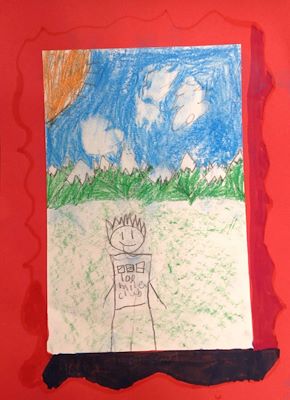 Abram, this is very good artwork of you running in 100 mile club! I like how you made the clouds and sky and grass line in the background like it is 3 dimensional. Nice work son!