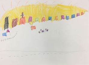 Samantha, I was studying your city. It looks like avert busy place. When you look close you can see faces in the buildings. The green on top looks like a cat and others look like different characters. Very clever.