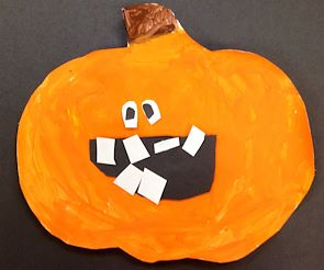 I love this happy pumpkin face! It’s amazing how a few pieces of glued on paper can be so expressive! -- Lauren