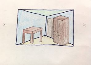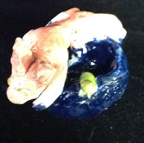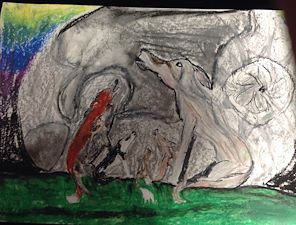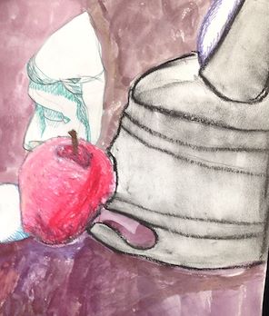 I really like the shading on the apple. The 3D effect is great. The face in the back is great. I like how the use of color helps to give it perspective. -- Erin