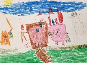 HEY COLE! We really like your picture this year. You used lots of colors. When we see you next time we hope you will tell us all about it! I’ll bet you didn’t know I have last year’s art work on a coffee cup. I use it a lot and think of you when I drink my morning coffee.