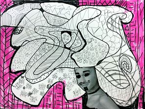 Your artwork is so creative. An amazing job of using all of the space. It makes me feel like the person’s mind is racing and full of thoughts and energy. I love it! -- Dad