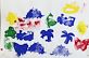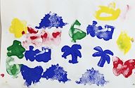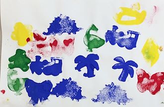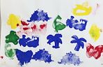 Students used sponge stamps to print a pattern in color and shape