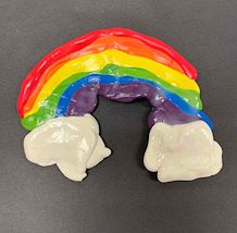 Students mixed secondary colors from primary (red, yellow, blue). Students practiced rolling coils to create a rainbow. Students had the option of using white or creating a tint to create clouds.