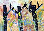 This radiant forest view is inspired by American artist Michelle Courier, a contemporary artist who paints with both realism and bright and colorful natural imagery. Part painting and part paper art, this lesson is a great practice in color mixing with watercolor and simple cutting.