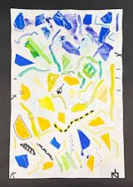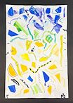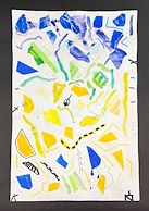 After exploring the non-representational works of Kandinsky, Miro, Matisse, Klee & Mehretu, and discussing improvisation, we collaged paper shapes, added color with watercolor, then finished with black line to create expressive pieces showing rhythm and movement.