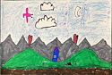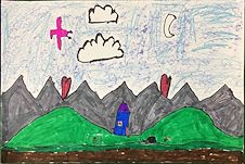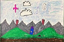 During October, third-grade artists learned about the art element line. They learned that thin and thick lines can have different effects on their art. Thin lines make things look further away, while thick lines help things stand out and appear closer. They learned that thick lines work best in large areas and thin lines are more suitable for detailed, small areas. Inspired by the artist Friedensreich Hundertwasser, students drew a landscape with a horizon line, thin lines, and thick lines. Then, they added their own creative details.