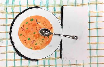 from school project "Mixed Media Alphabet Soup"