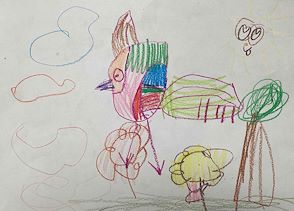 Kindergarten kids did a draw along exercise while making this cute creature using bold lines and colors.