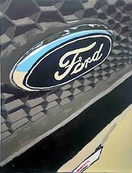 This is a picture of the grill of my truck. it has a complex hexagon pattern. i am happy with the ford emblem. the reflection was very hard to make, i couldve used better colors.
