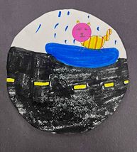 Students received a colored sticker in the shape of a circle. They put it anywhere on a blank circle, then using their imaginations, created a drawing around the sticker as an idea starter. The book "The Dot" by Peter H. Reynolds was inspiration, which is celebrated on September 15 of every year as International Dot Day.