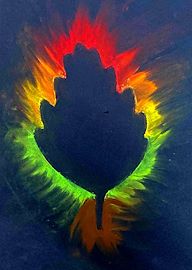Students in art club explored soft pastel! First, students selected a paper leaf template and taped it to their black paper. Next, three or more soft pastel colors were selected and colored around the leaf template. Last, students used their fingers to smear the soft pastel away from the leaf template in a radial manner. Once complete, the leaf template was carefully removed to reveal the leaf silhouette. Gorgeous work art club!