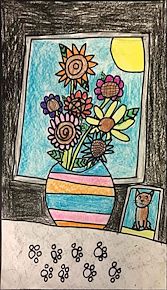 Artists learn about an Artist every Friday! For the first quarter of school, artists learned about Vincent Van Gogh. We created a flower drawing inspired by Van Gogh's sunflower paintings.