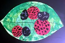 Students created a collage inspired by Eric Carle's book "The Grouchy Ladybug". Students painted their papers in the technique of Eric Carle and then created their own ladybugs and leaves from the papers. Expressive faces were drawn on their ladybugs to show various emotions.