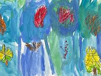 Students learned about the Black Forest in Germany and that many of our well known fairy tales come from that region. They used knowledge of depth and space to create a forest floor and an inviting stump where a forest creature could rest. The addition of ferns, mushrooms and leaves added to the magical nature feel of their projects.