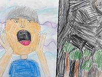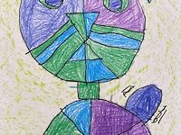 After looking through past dragon artworks such as Hokusai’s Dragons as inspiration for this project, 5th graders were asked to revisit familiar concepts like form, value, texture, contrast, pattern, and emphasis during their own dragon eye creation. Students use reference photos to examine animal eyes as inspiration to create their own from those photos. Students learn about the repetition of scales, the difference between tactile and implied textures & how to use tints and shades of a color to create shadows and highlights. Students were asked to focus on just the eye, and the surrounding details. Students were also encouraged to really individualize each scale and hone in on the skill of shading, and layering to craft a strikingly enlarged dragon eye. Those looking for a challenge were allowed to create a reflection in the eye as well.
